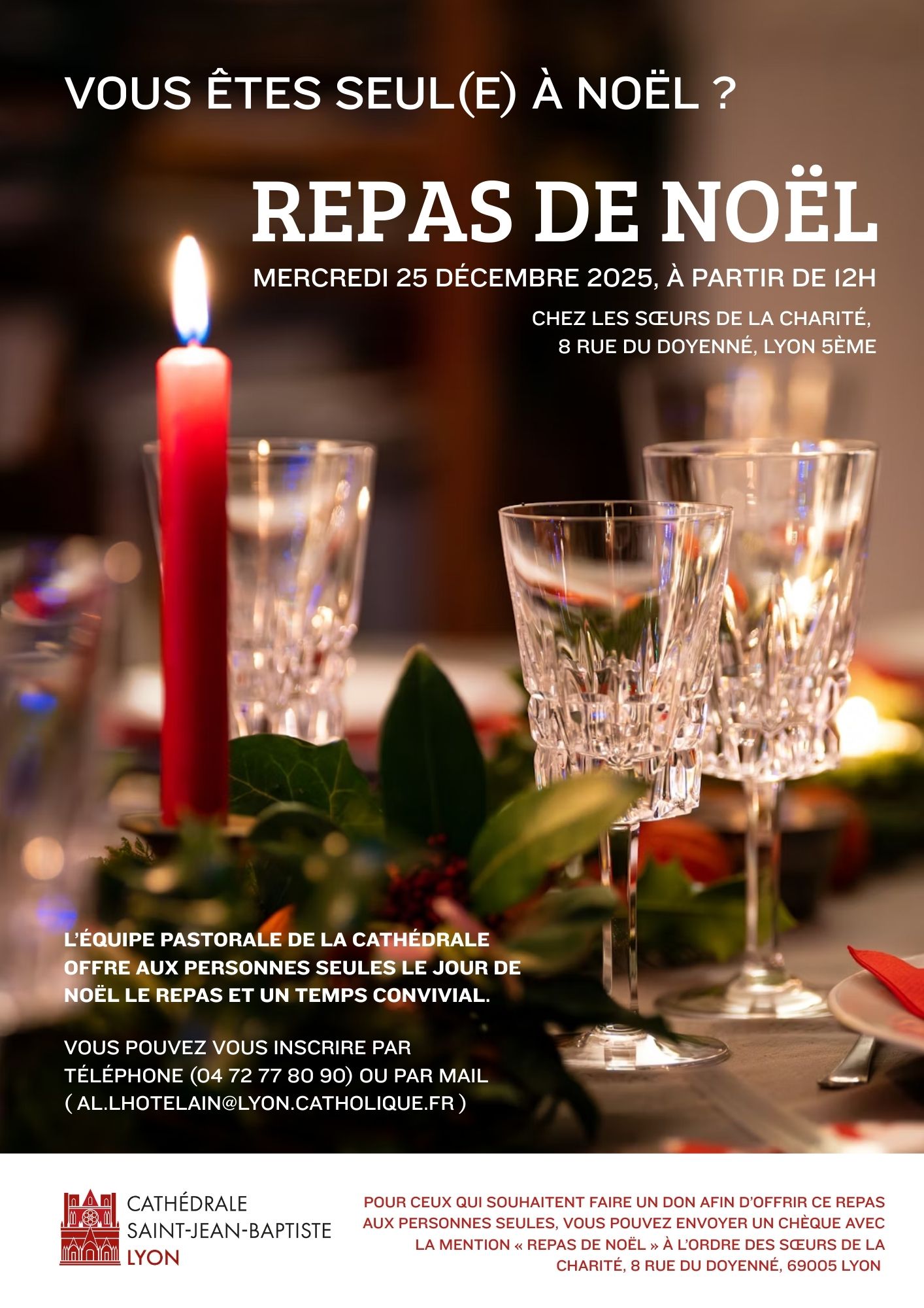 Pour ceux qui souhaitent faire un don afin d’offrir ce repas aux personnes seules, vous pouvez envoyer un chèque avec la mention « Repas de Noël » à l’ordre des Sœurs de la Charité, 8 rue du Doyenné, 69005 Lyon