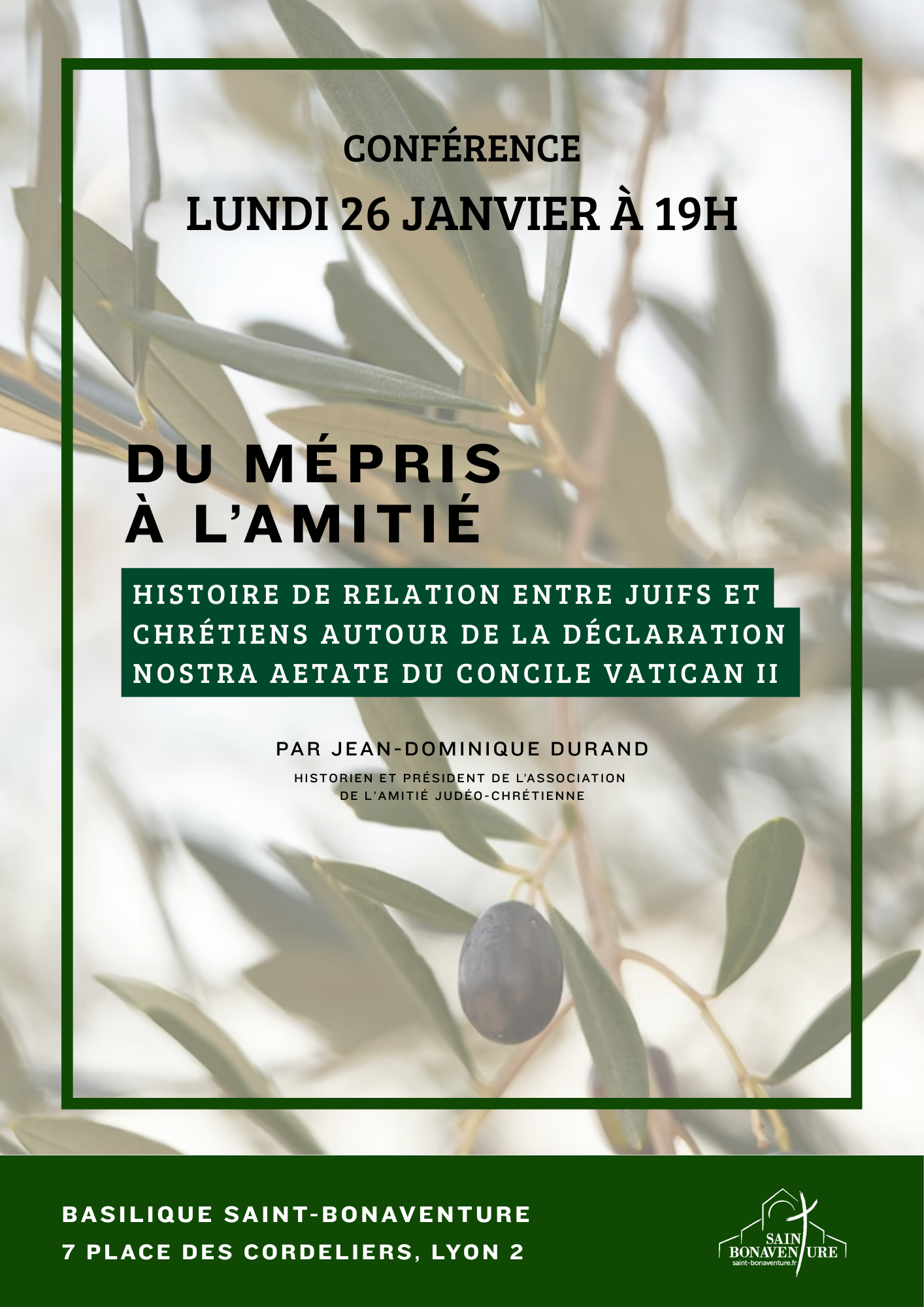 Cette conférence sera portée par Jean-Dominique Durand, historien et président de l’association de l’Amitié judéo-chrétienne, à la Basilique Saint-Bonaventure.