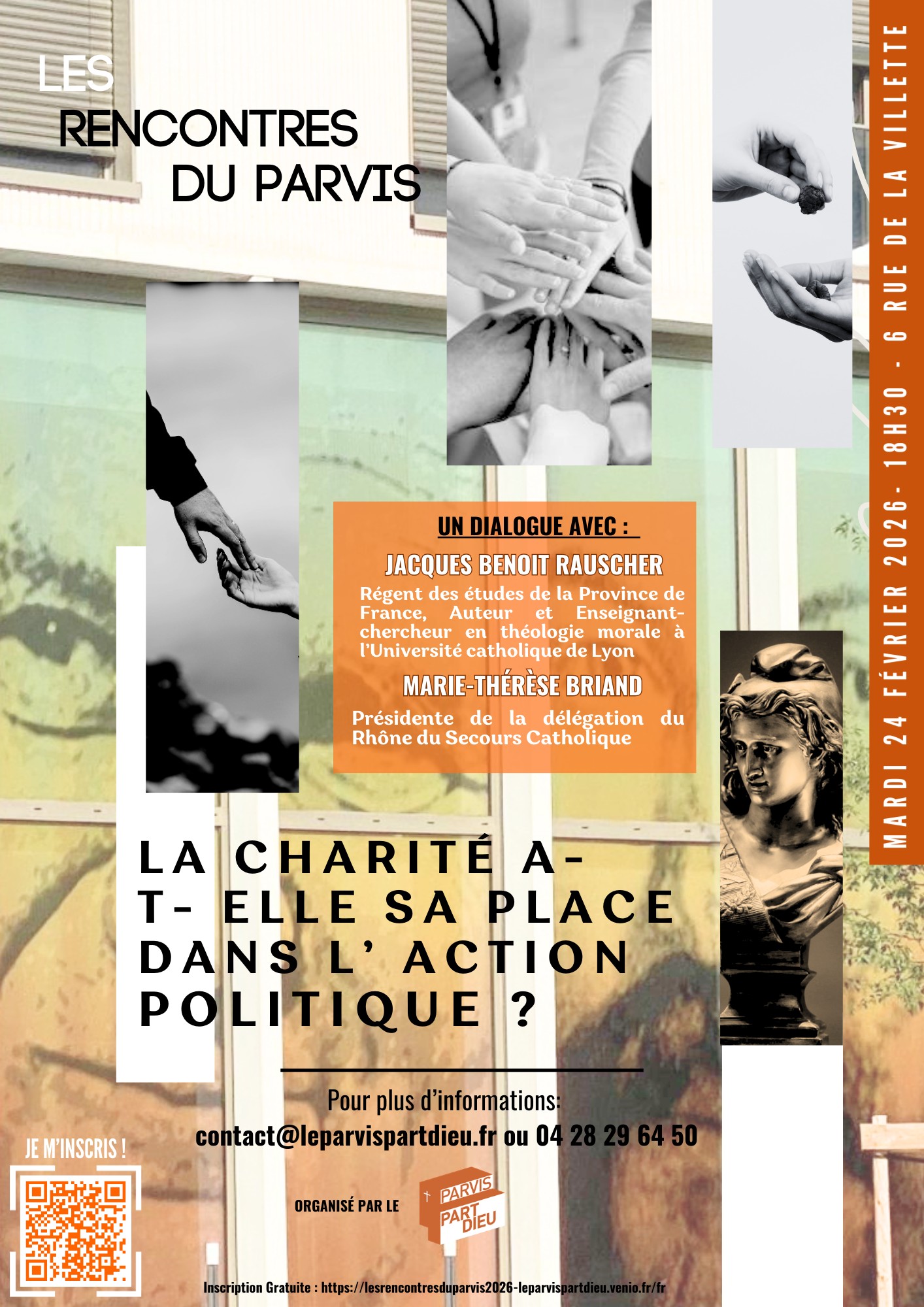 Nous demanderons de nous aider à comprendre cet enjeu à Jacques-Benoît Rauscher o.p., régent des études de la Province de France, enseignant-chercheur en théologie morale à l’Université catholique de Lyon, et Marie-Thérèse Briand, présidente de la délégation du Rhône du Secours Catholique.