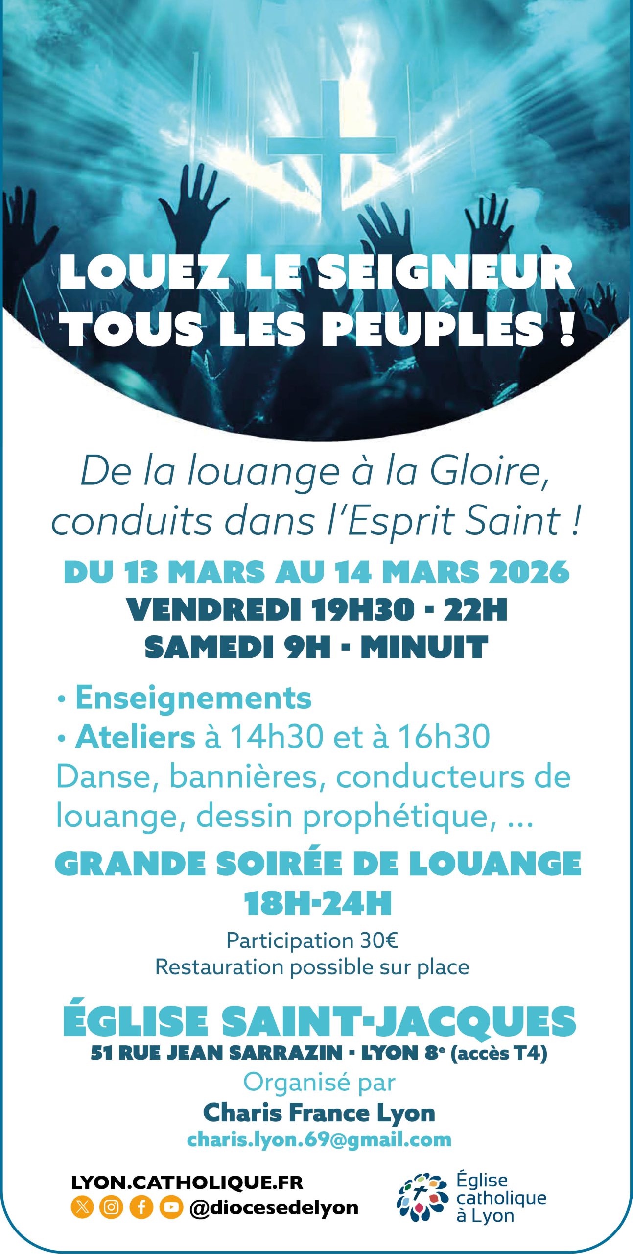 Lieu : Eglise St Jacques, 51 rue Jean Sarazin 69008 LYON (accès T4)