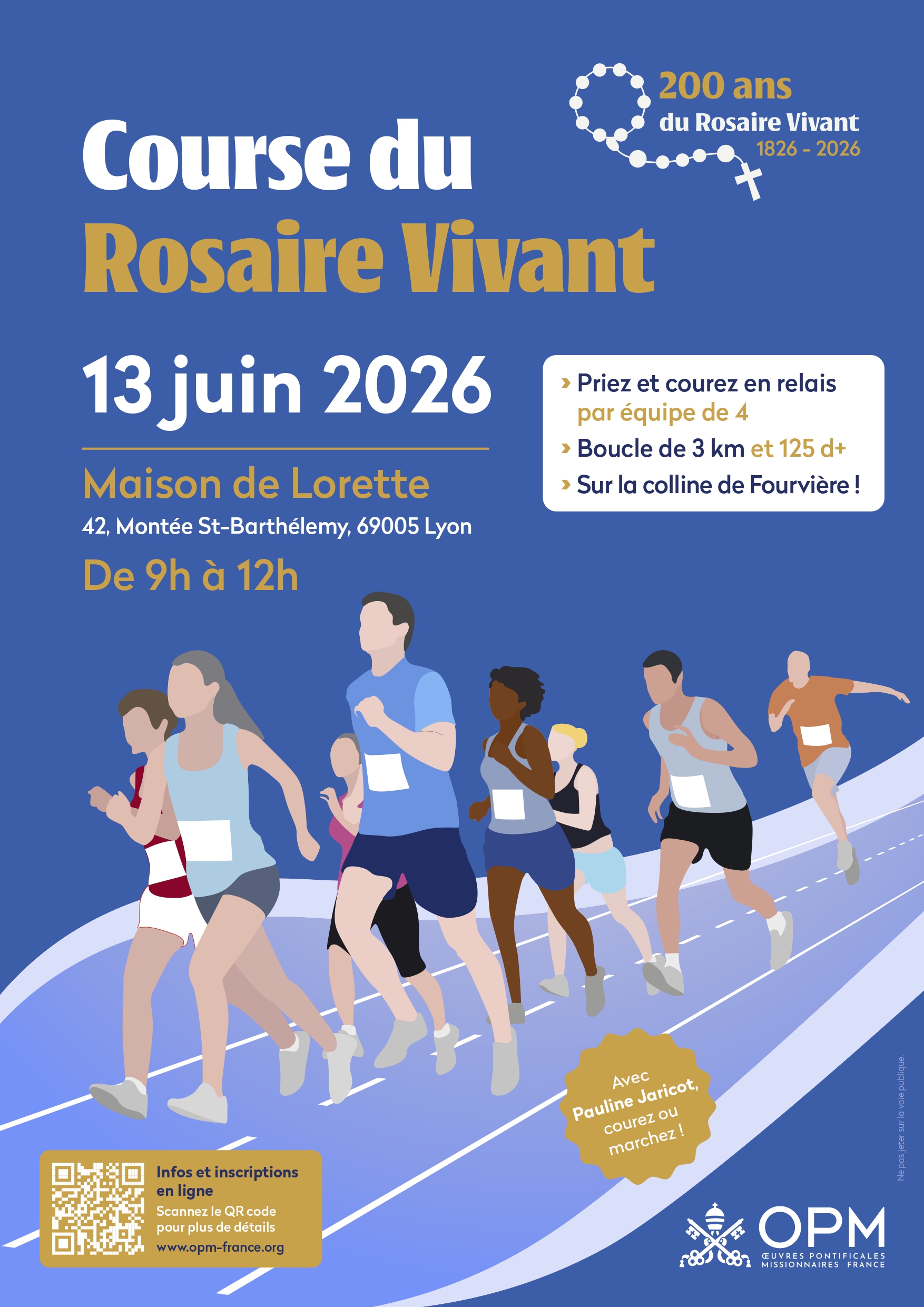 Né en 1826 de l’intuition de la Bienheureuse Pauline Jaricot, le Rosaire Vivant est considéré comme « le premier réseau social de prière » et a essaimé dans le monde entier ! Venez rendre grâce à Marie et (re)découvrir la prière du Rosaire à l’occasion d’un rassemblement festif : temps de prière, messe du bicentenaire, conférence sur l’actualité du Rosaire, témoignages autour de Pauline Jaricot mais aussi course missionnaire !